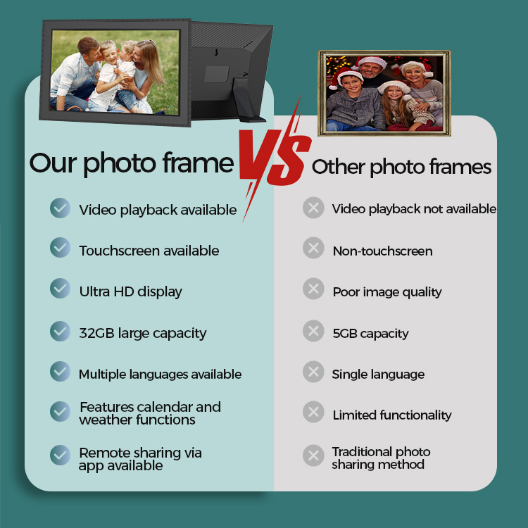 Supports Wi-Fi, photo display, video playback, touchscreen operation, HD display, multi-user sharing, USB interface, and 32GB large storage capacity.