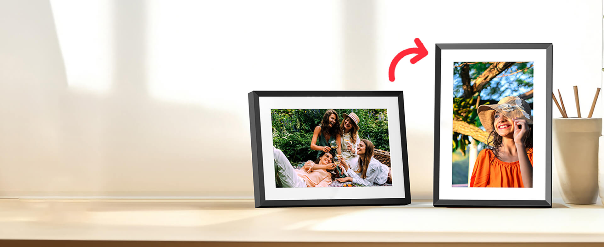 Use technology to bring us closer, letting beautiful memories be displayed anytime. The frame features gravity sensor functionality, allowing it to be used as either a tabletop ornament or a wall-mounted piece