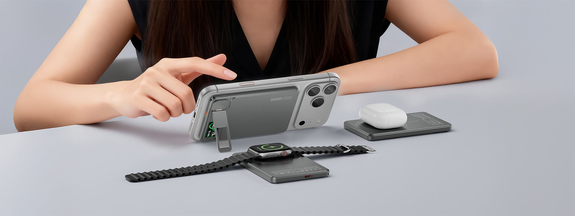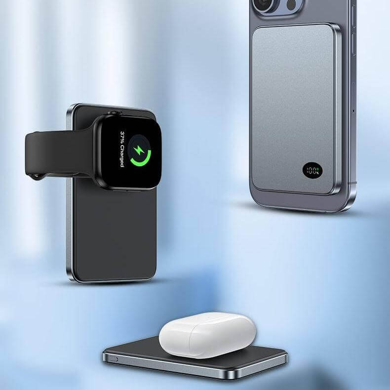 3-in-1 Charging: Can charge your phone, watch, and earbuds.